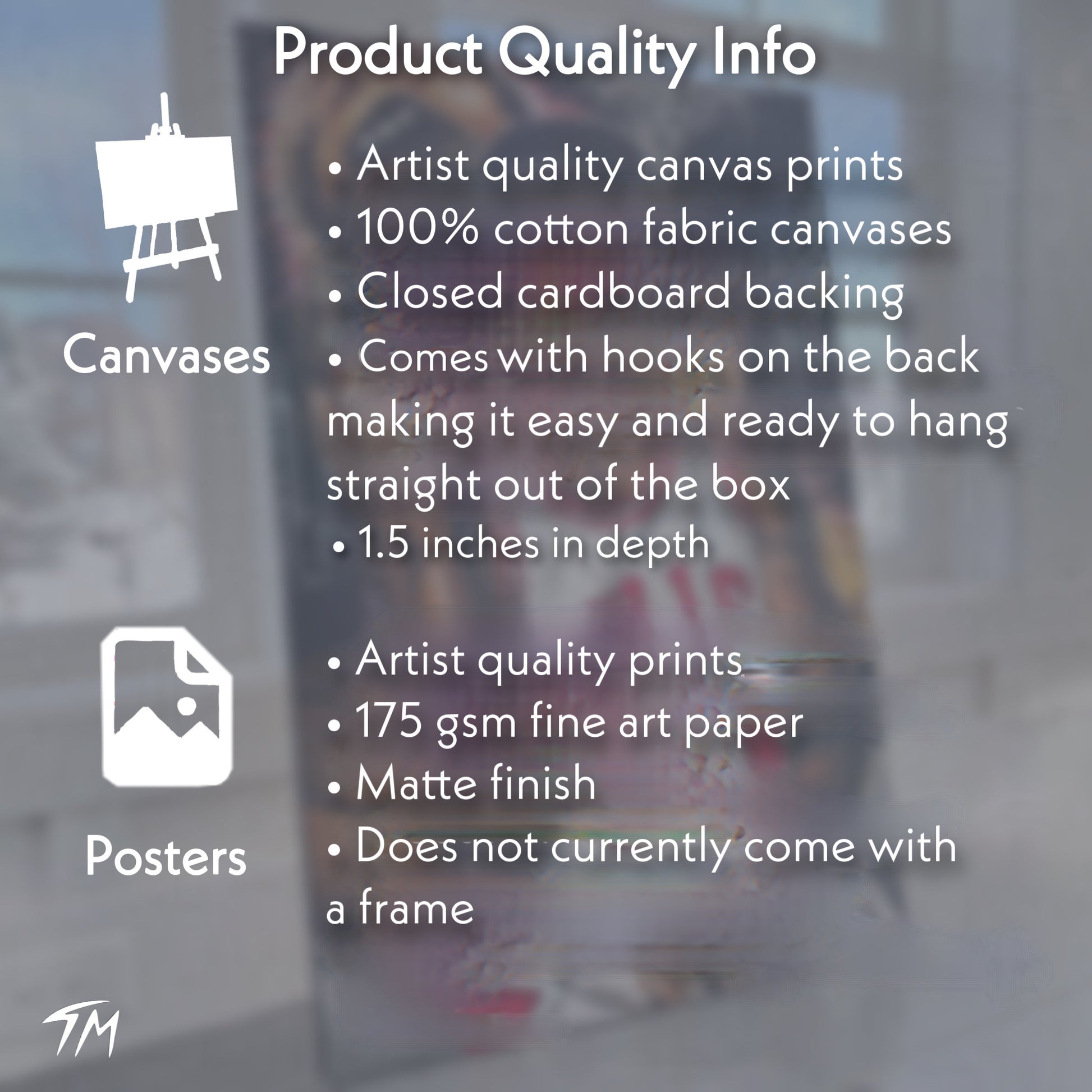 We are the Industry-Recognized standard for High-Quality Canvas Art. We use UL ECOLOGO & UL GREENGUARD GOLD certified 1 Water-based HP latex inks. They are an acid free, archival quality giclee print process.