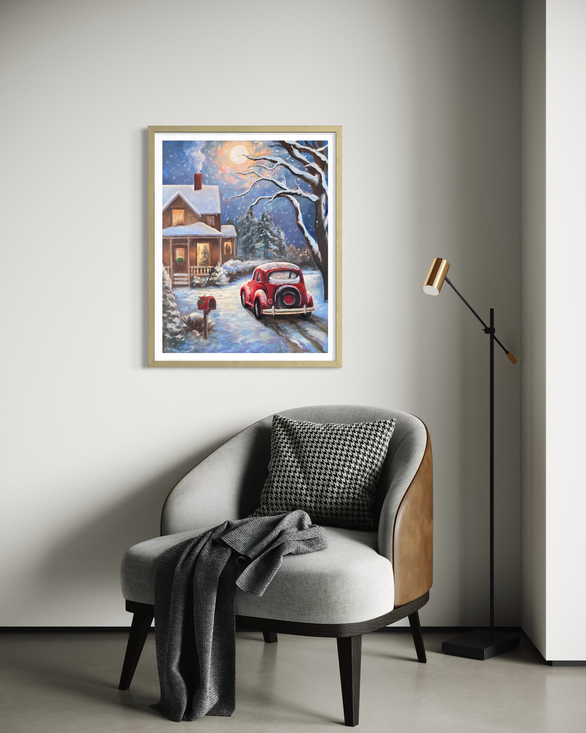 Hand-painted by Tommy Manning and reproduced as a high-quality poster print, Coming Home is made to bring warmth into your space during the holidays — and long after Christmas is over.
