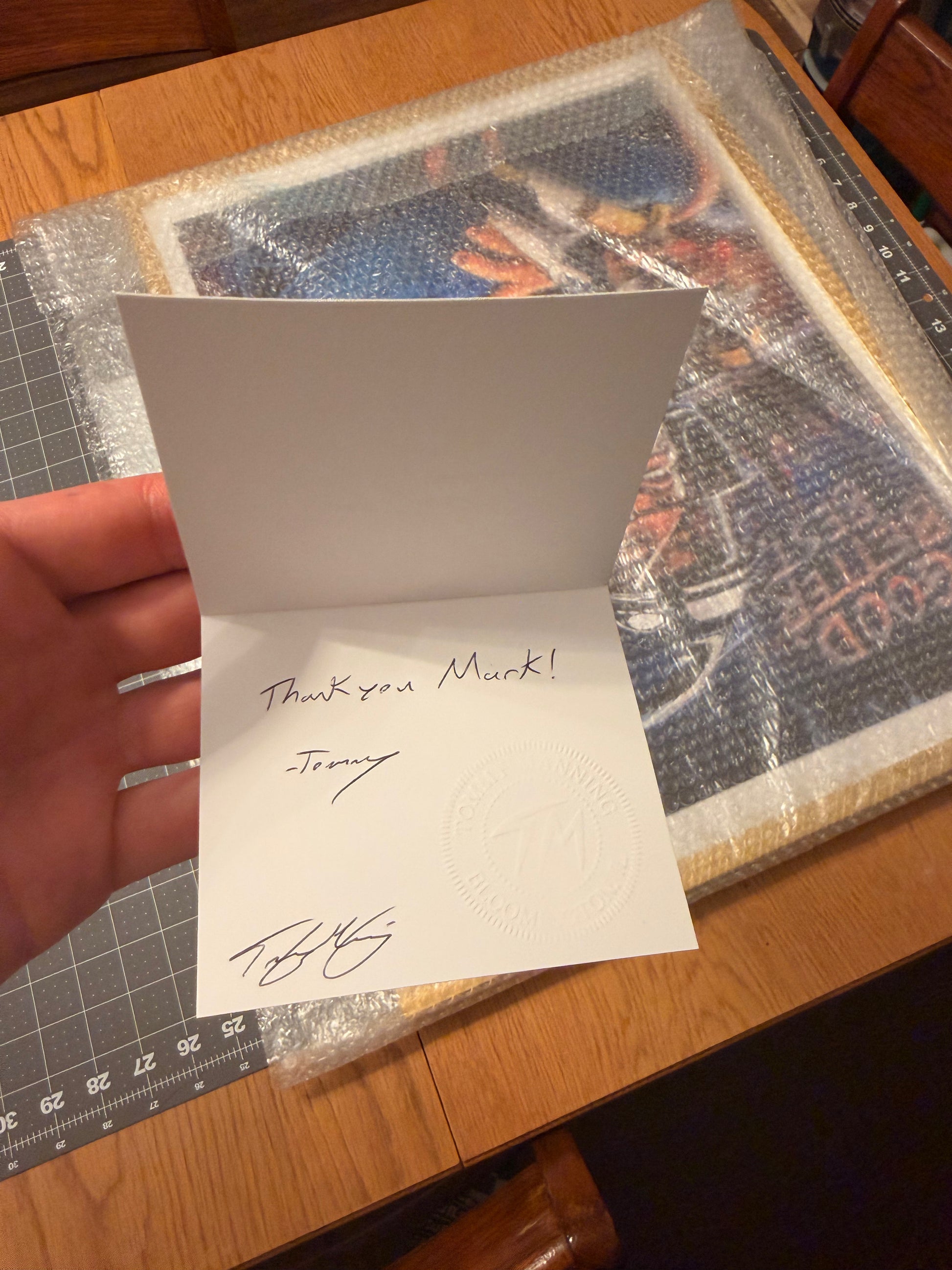 Every print is hand-signed and numbered by Tommy Manning. A handwritten thank-you note is included with every order — it also serves as your certificate of authenticity. Plus, 1–3 free stickers ship with every order.
