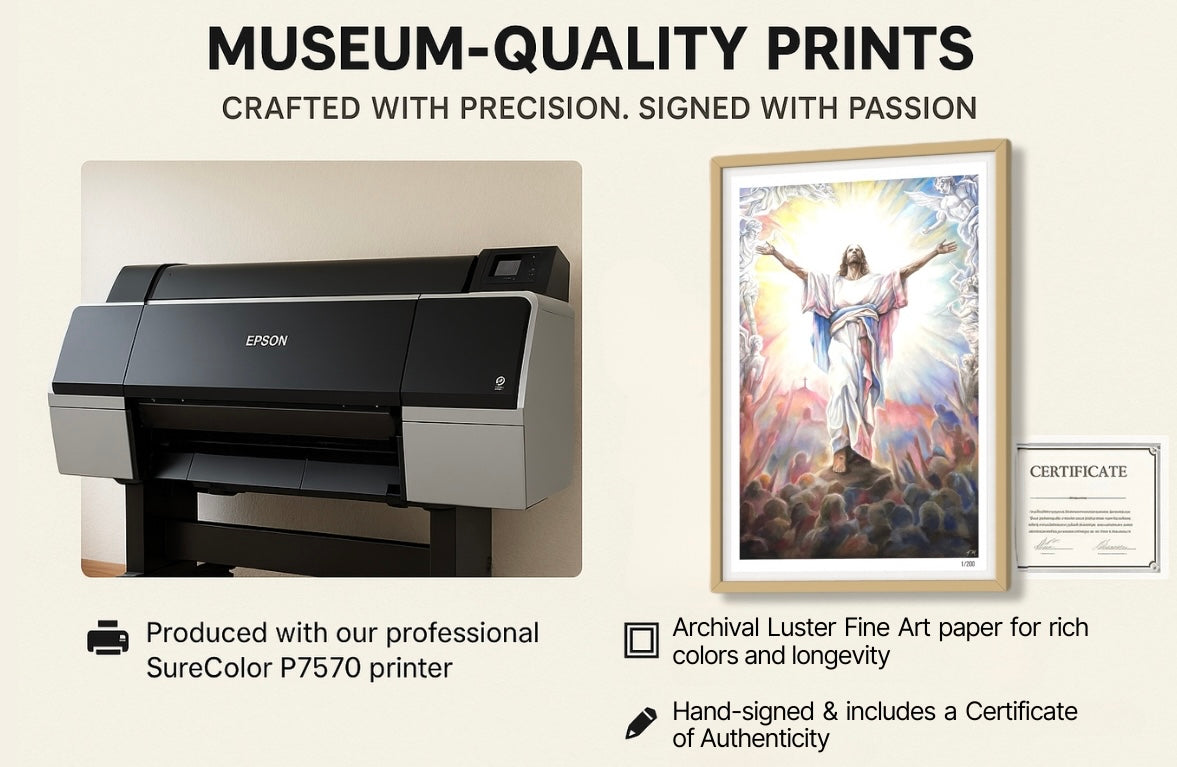 This isn't a mass-produced poster. It's a signed, numbered fine art print made from an original hand-painted work by Tommy Manning — printed in-house on professional-grade paper using an Epson SureColor P7570.