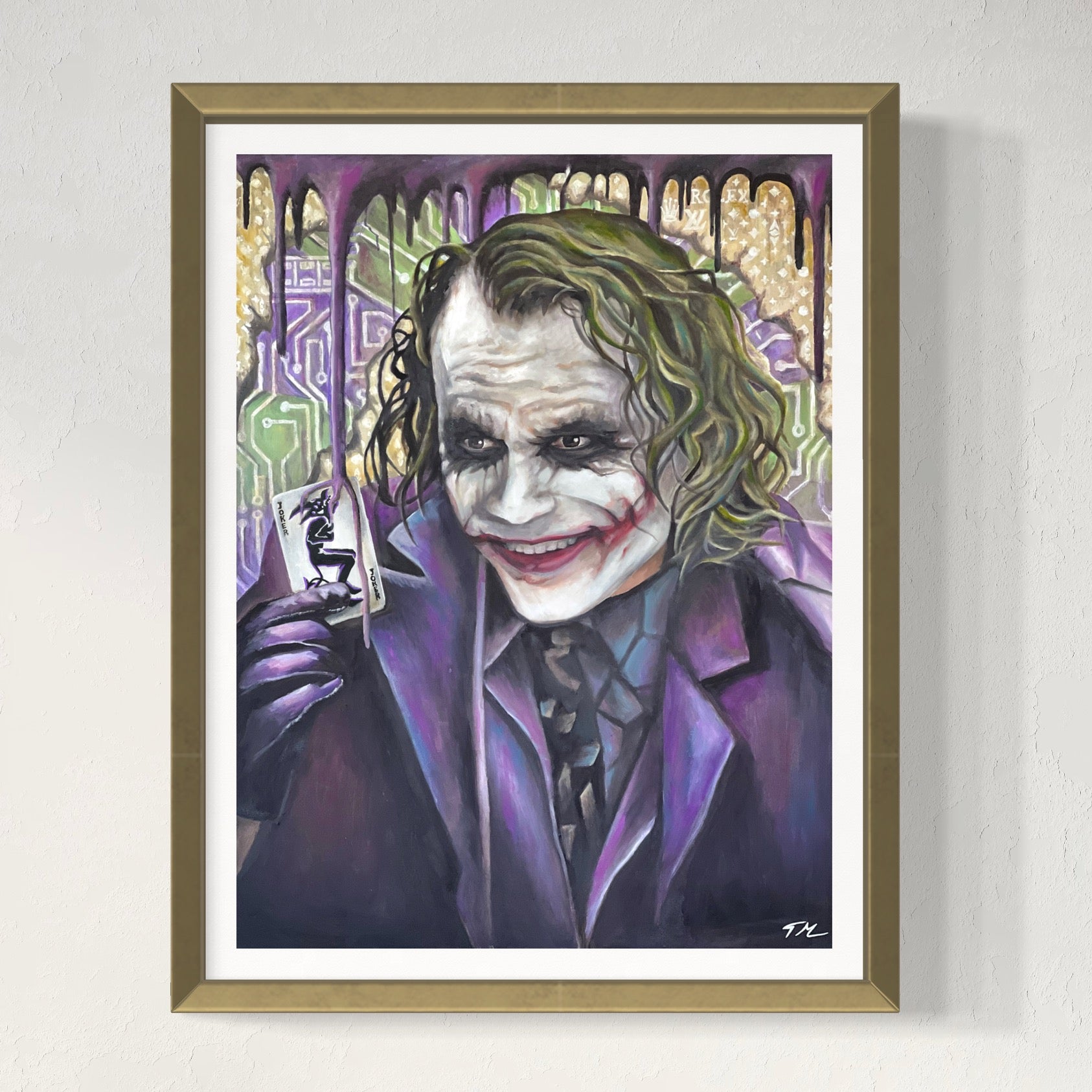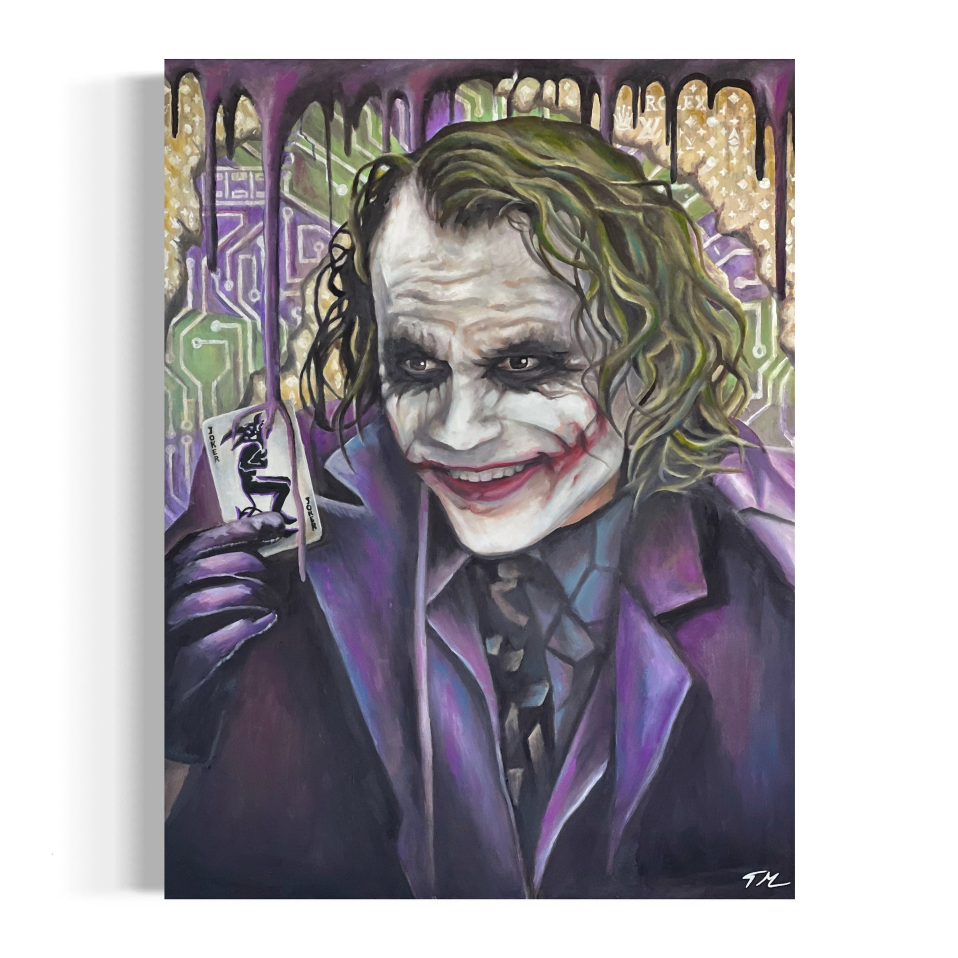Immerse your space with artwork of Joker Card by Tommy Manning, with our ready-to-hang Poster Prints. Elevate your walls with this hand-painted masterpiece, blending artistry and ambiance. Enhance your decor with Joker Poster Art Wall Prints. Featuring powerful and haunting imagery of the iconic character, these high-quality prints capture the intensity and mystique of the Joker. Perfect for fans of the Batman series and lovers of compelling villains, this artwork adds a bold and dramatic touch to any room.
