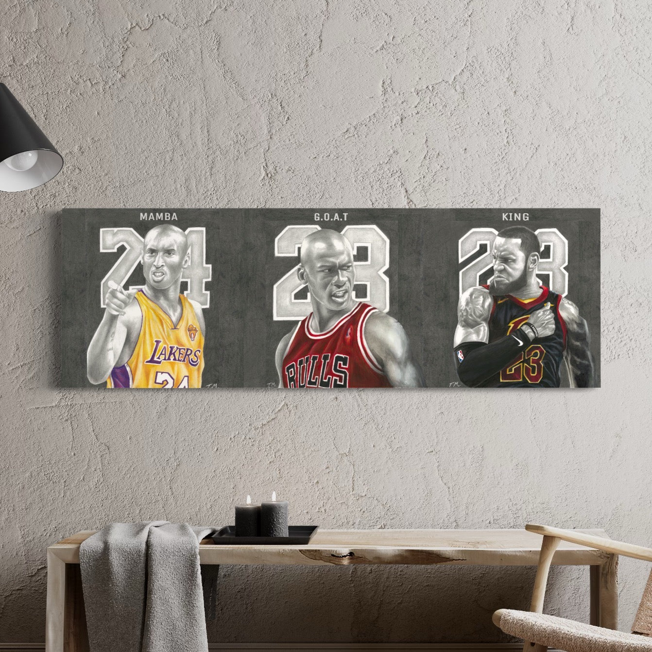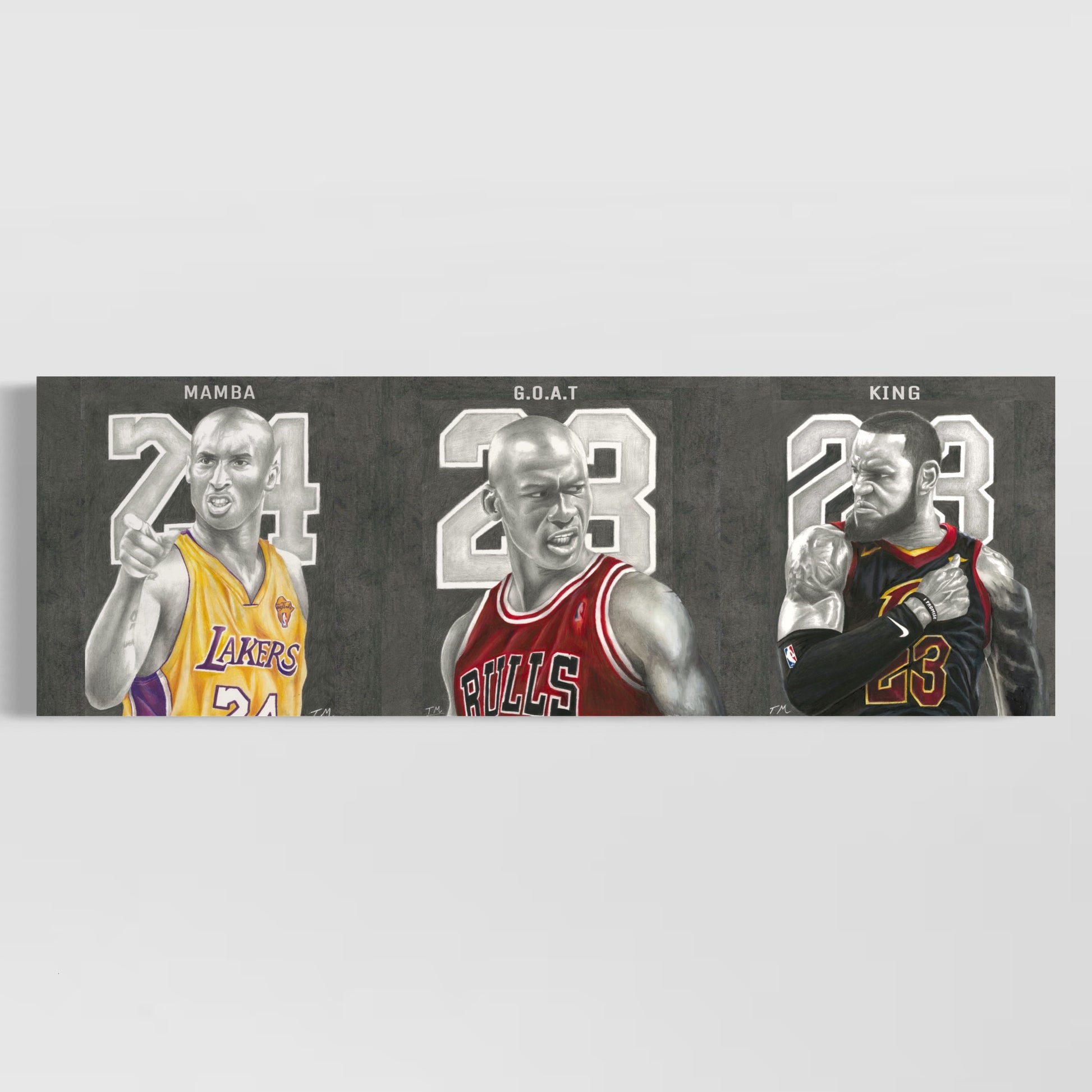 Immerse your space with artwork of Tommy Manning Kobe Bryant Mamba, GOAT, King Limited Collage Canvas Wall Art Prints with our ready-to-hang Canvas Prints. Elevate your walls with this hand-painted masterpiece, blending artistry and ambiance. Honor basketball royalty with the Kobe Bryant, Michael Jordan, LeBron James Mamba, GOAT, King Limited Collage Canvas Wall Art Prints. This exclusive artwork features a dynamic collage celebrating the greatness of three NBA legends. Perfect for fans and admirers of these iconic athletes, this high-quality canvas print adds a powerful and inspiring touch to your home or office decor, showcasing the legacy of basketball's most revered figures.