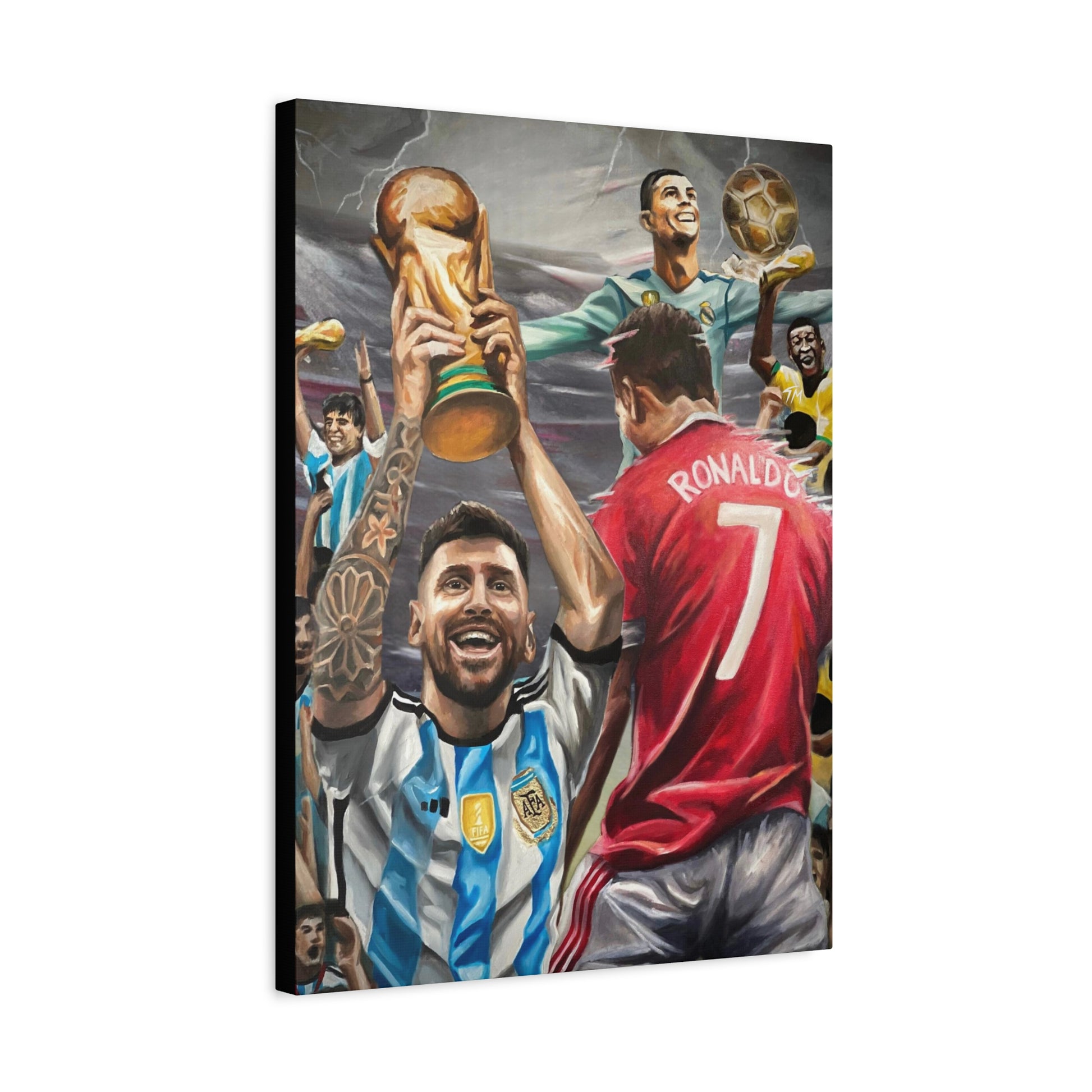 Immerse your space with artwork of Tommy Manning Lionel Messi and Cristiano Ronaldo Soccer Legends Canvas Wall Art Prints with our ready-to-hang Canvas Prints. Elevate your walls with this hand-painted masterpiece, blending artistry and ambiance. Celebrate soccer greatness with Lionel Messi and Cristiano Ronaldo Soccer Legends Canvas Wall Art Prints, featuring high-definition, dynamic images of the iconic footballers. Perfect for sports enthusiasts and fans, these premium-quality prints capture the brilliance and rivalry of Messi and Ronaldo. Available in various sizes, each canvas is stretched over a sturdy frame, ready to hang and infuse any space with football excellence and legendary inspiration.