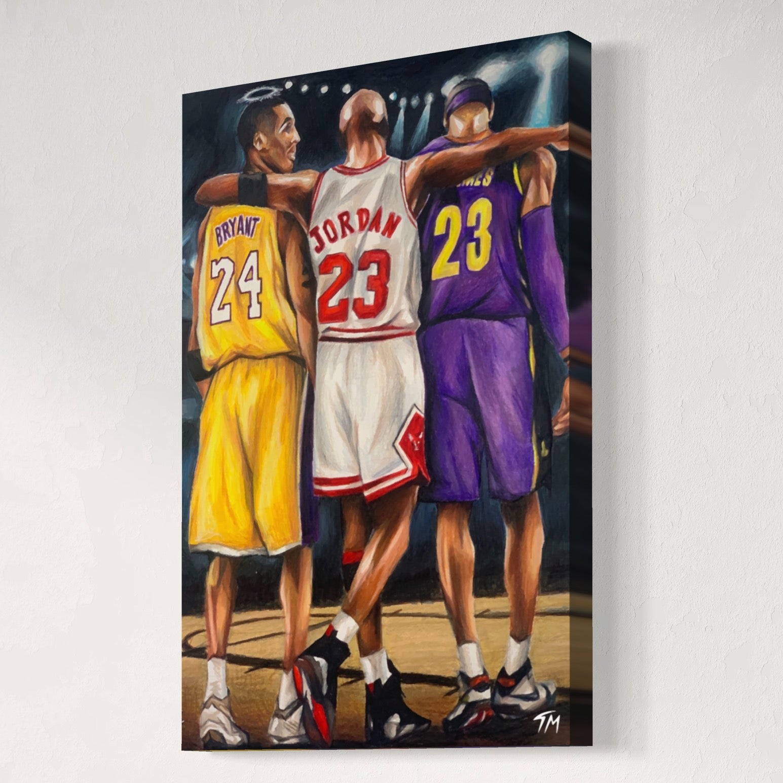 Immerse your space with artwork of Tommy Manning with our ready-to-hang Canvas Prints. Elevate your walls with this hand-painted masterpiece, blending artistry and ambiance with Michael Jordan, Kobe Bryant, and LeBron James Canvas Wall Art Prints, showcasing the legendary trio of basketball greatness. Each high-quality print captures the iconic moments and unparalleled talent of these sports icons, perfect for fans and collectors. These vibrant, durable canvases make a powerful statement in any room, celebrating the legacy and impact of basketball's most influential stars.