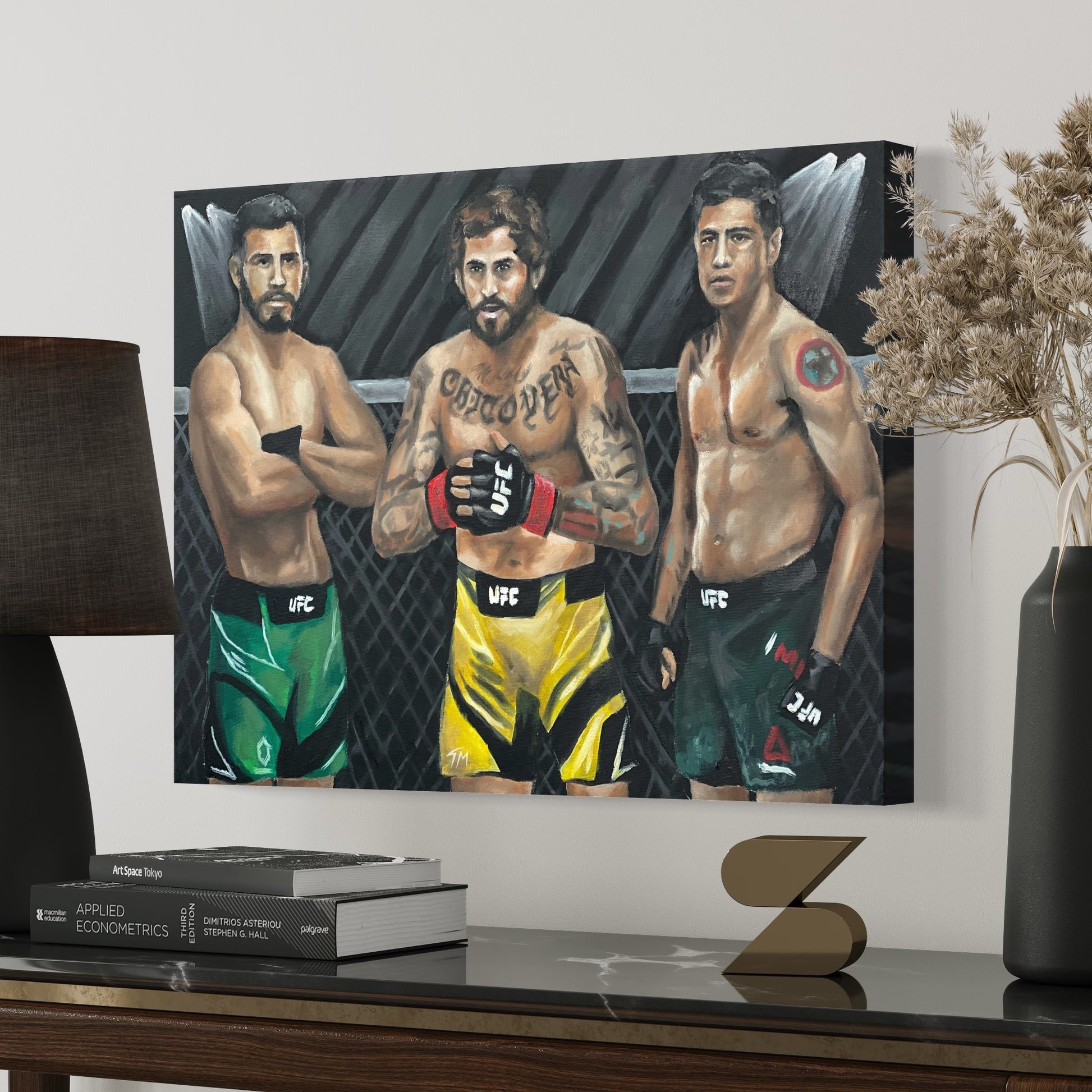 Immerse your space with artwork of Tommy Manning Yair Rodriguez Chito Vera Brandon Moreno UFC Legends Canvas Wall Art Prints with our ready-to-hang Canvas Prints. Elevate your walls with this hand-painted masterpiece, blending artistry and ambiance. Elevate your space with the electrifying energy of UFC legends Yair Rodriguez, Chito Vera, and Brandon Moreno with our canvas wall art prints. Capturing the intensity and spirit of their iconic battles, these prints celebrate the passion and skill of these remarkable athletes. Perfect for MMA enthusiasts and sports fans alike, showcase the power and determination of these UFC icons in your home or gym.